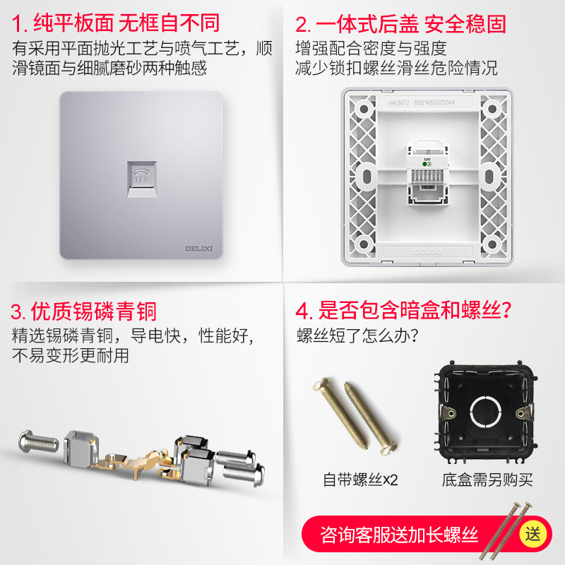 Delici Phone Socket Panel 86 - A telephone wall switch socket telephone line socket silver