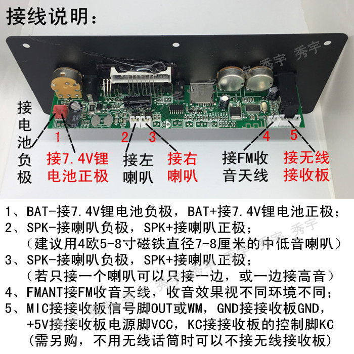 1956 Vending machine power amplifier board 9V charging square dance Bluetooth MP3 decoding 7 4V lithium battery audio motherboard