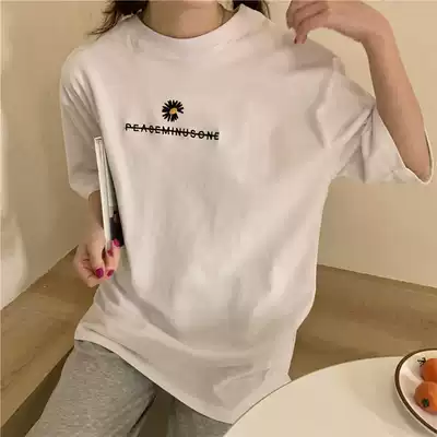 Retro harbor style summer chic loose pure white half-sleeve top ins Super fire small daisy short sleeve t-shirt women's T-shirt