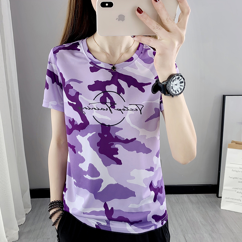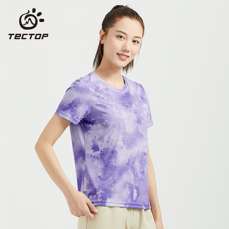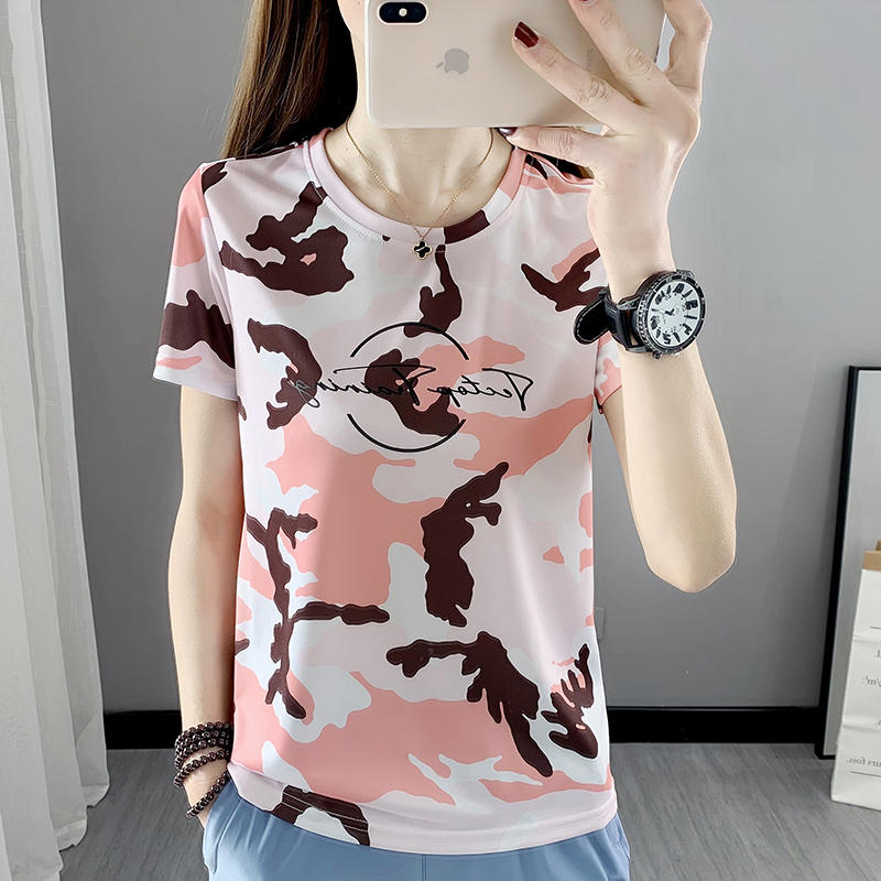 Printed speed dry short sleeves T-shirt mesh breathable round neckline body half sleeves mountaineering sports blouses outdoor women's scouts