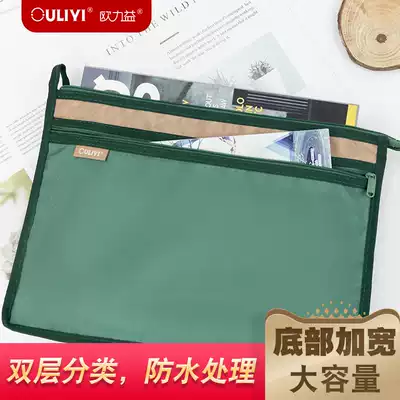 Ouliyi large-capacity storage document bag Information bag A4 multi-function double-layer portable bag B5 waterproof zipper student stationery office classification file bag custom children's tender birth inspection