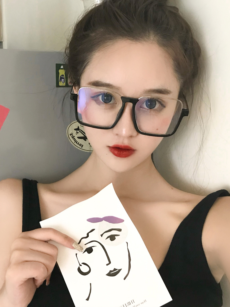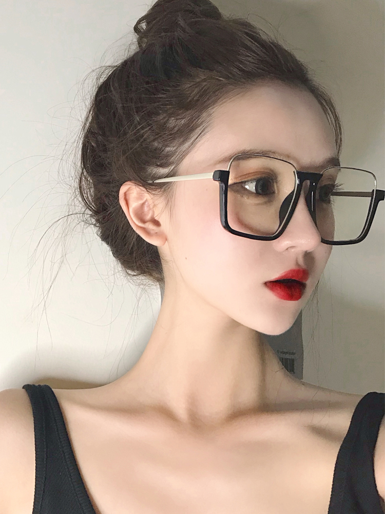 Sun Glasses Women Ins Street Beats Big Face Slim Glasses Han Version Myopia Round Flat Light Big Frame Half Frame Sunglasses Woman