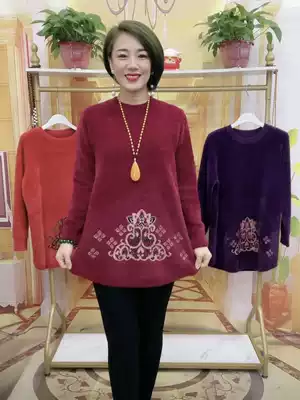 Autumn and winter new mother dress old age plus fat increase 2021 fashion age reduction large size medium long mink velvet base shirt
