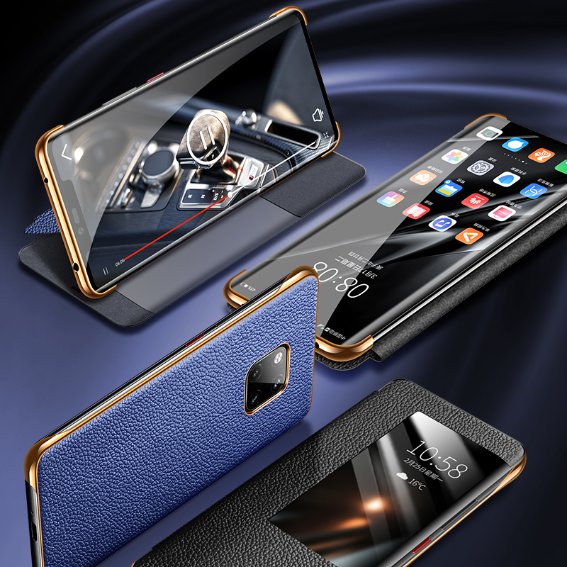 Suitable for Huawei mate20pro mobile phone protection shell genuine leather intelligent free clamshell mate20 anti-fall limit volume version qu screen cow leather cover full package protection meta male section por upmarket mett