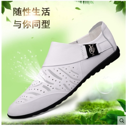 Summer new bean-bean shoes Men's Korean version Genuine Leather Individuality Small Leather Shoes Soft Bottom Breathable Men Casual Leather Shoes 100 hitch