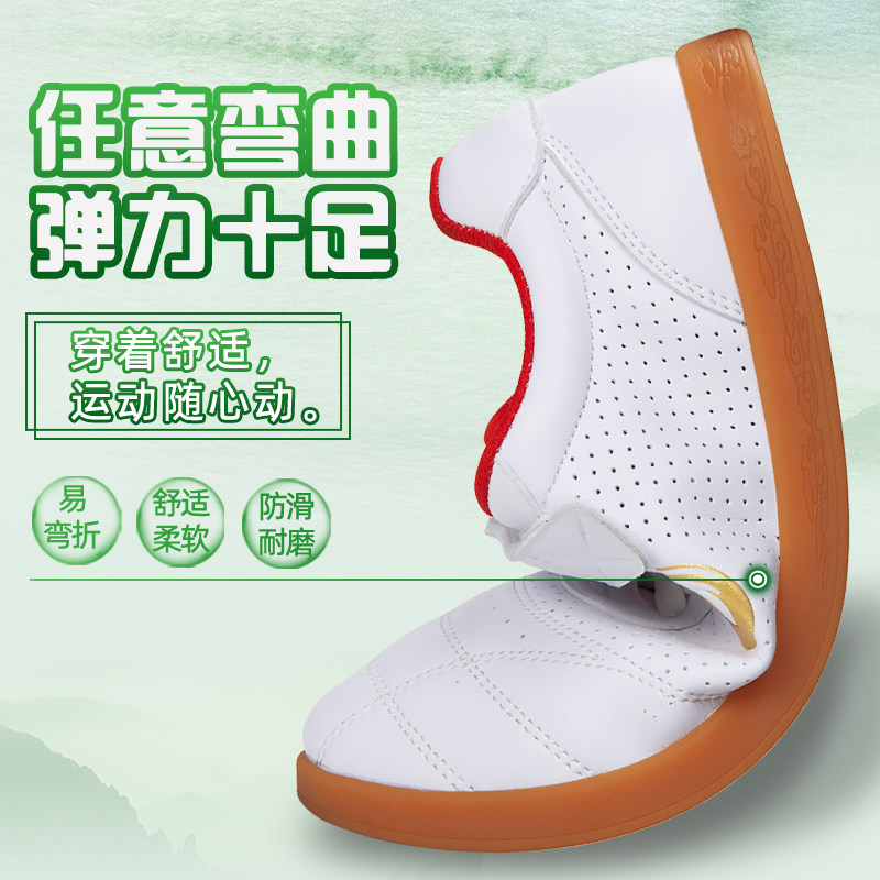 Tai Chi Shoes Men And Women Gluten Bottom Genuine Leather Taijiquan Shoes Competition Special Martial Arts Shoes Training Tai Chi Sneakers