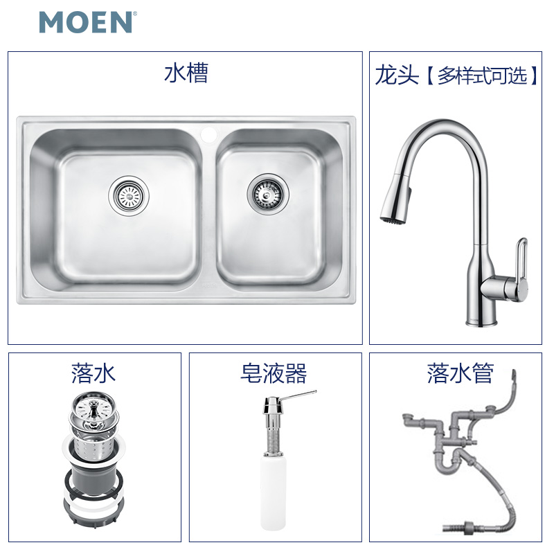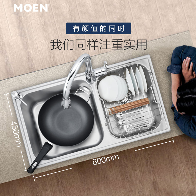 moen Moen stainless steel thickened kitchen sink double sink wash dishes wash basin sink basin upper and lower basin 28116sl