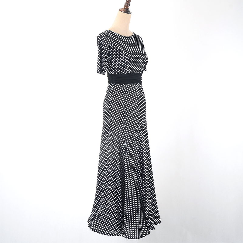 Black dark green butterfly flower roar BAO WEN black and white midpoint black custom A big backless jujube red season flower white background wave dot custom B round neck non-refundable butterfly flower ice silk