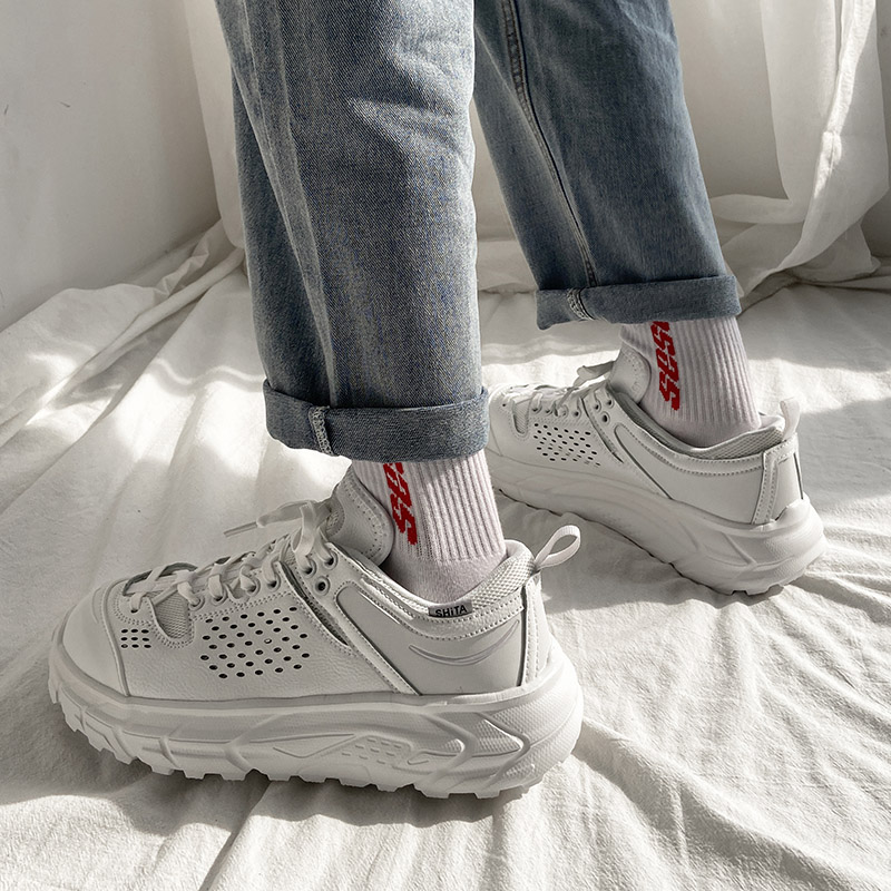 Shawn Yue with the same function Shanben Hong Kong style all black net red couple summer breathable daddy shoes men's muffin ins tide