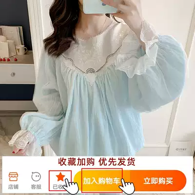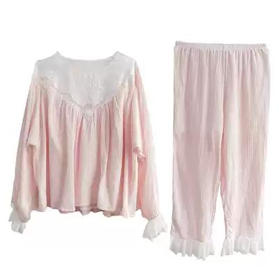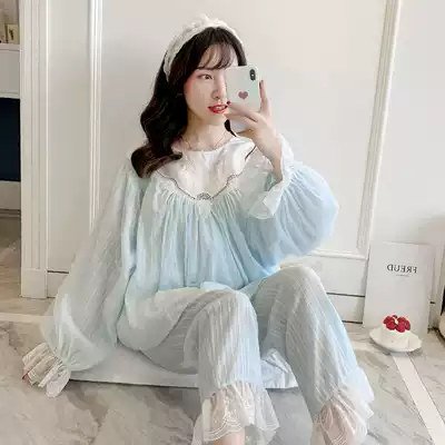 Cotton cloth women's pajamas women's spring and autumn fashion bubble sleeves Palace princess style set long sleeve winter home wear