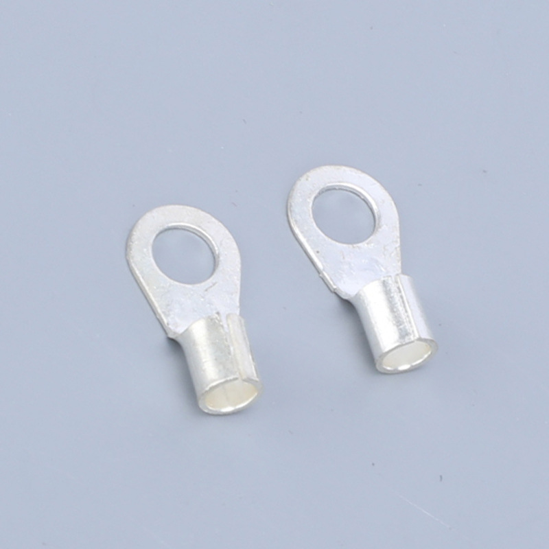 brass silver plated OT4 6 10 16mm squared cold pressed O round copper wiring terminals 6-4 6 8 10 12 bare end heads