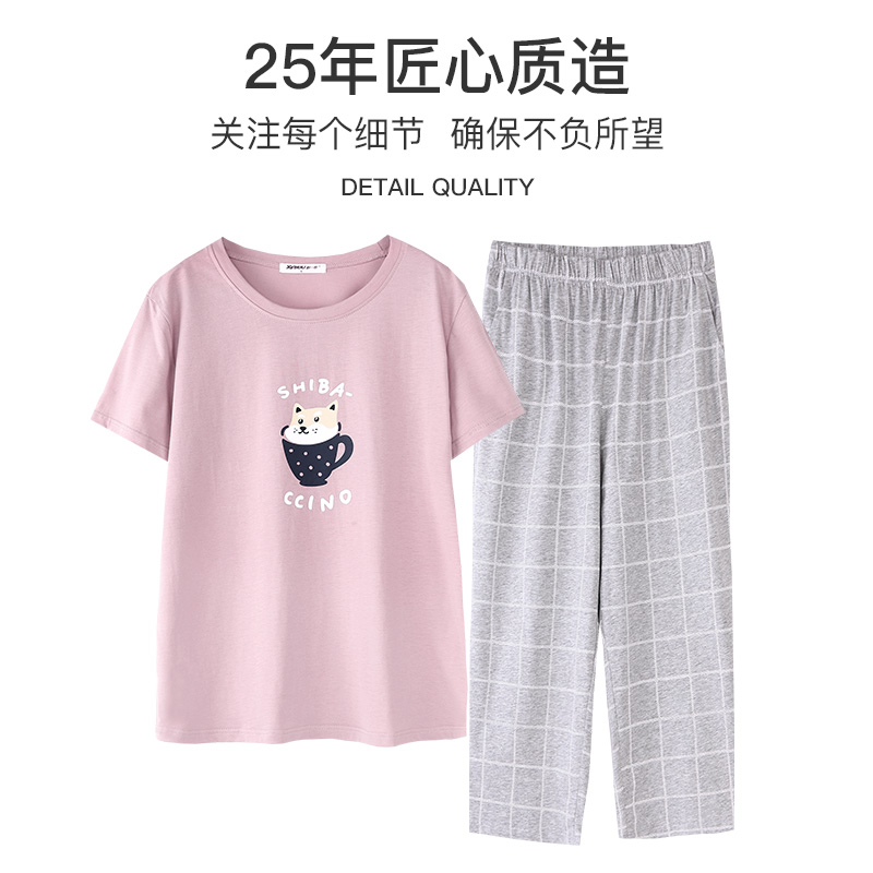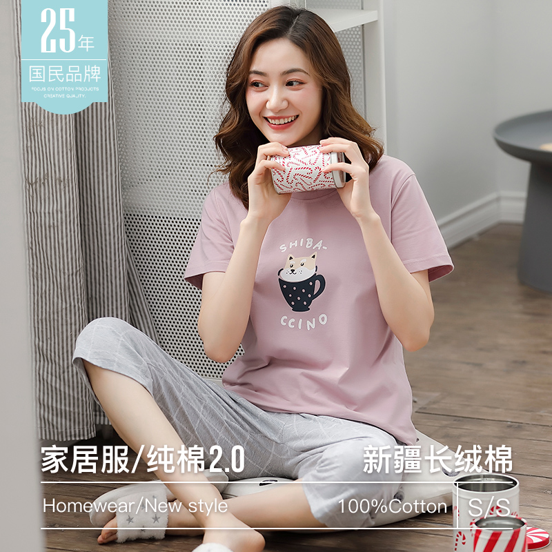 New step summer pajamas women summer 2021 new pure cotton thin short sleeve home wear two suits can be worn