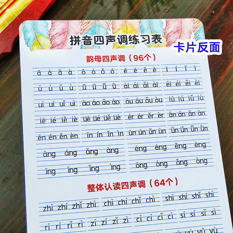 Pinyin table (four-tone practice table on the back) full table of pinyin syllables in Chinese pinyin (initials on the front and finals on the back)