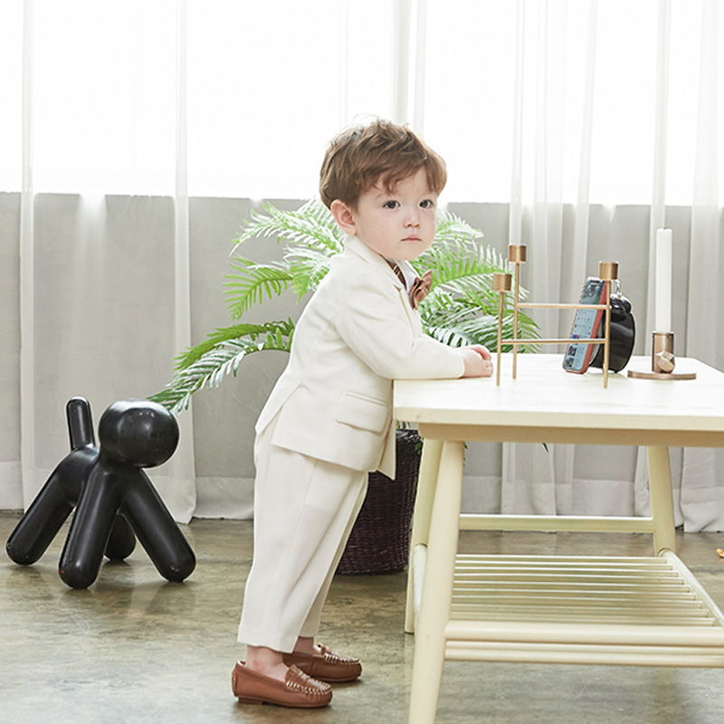 Children's suit white boy casual suit Korean handsome little suit three pieces of flower suit for birthday