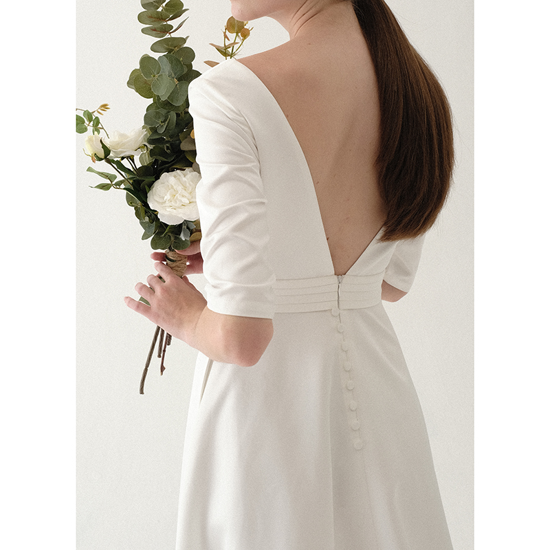 Floral modern minimalist wind dew back small trailing outdoor meadow West lawn wedding light wedding dress Brigade Pat
