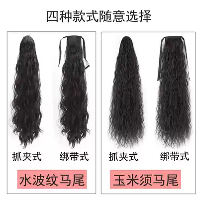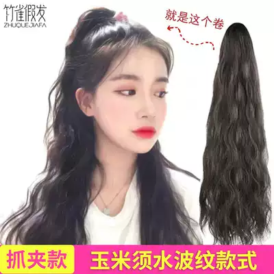 Wig female long curly hair corn hot strap natural grab clip water corrugated ponytail braid fluffy plus hair net red