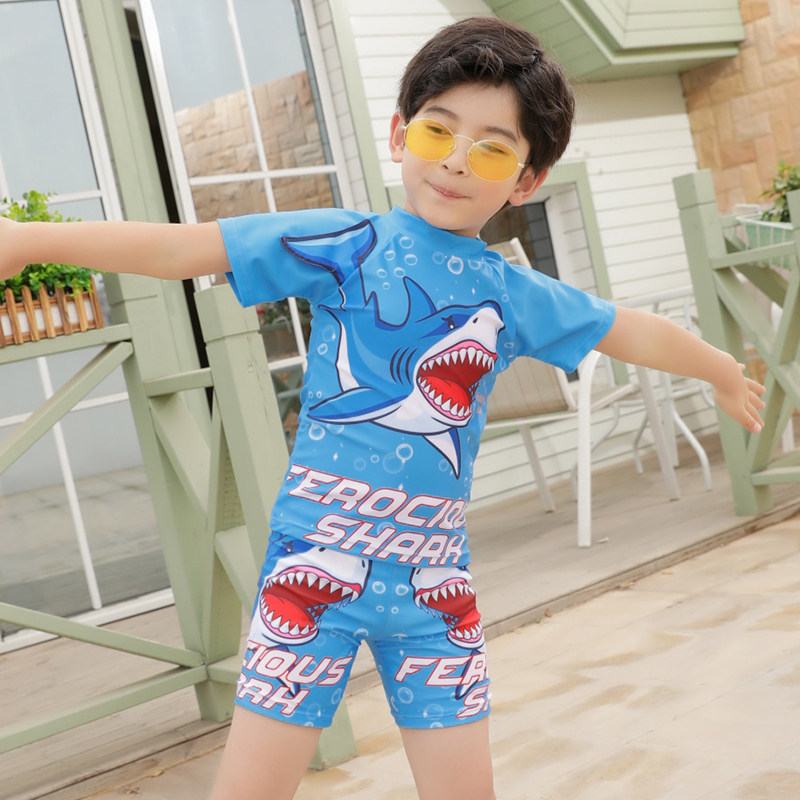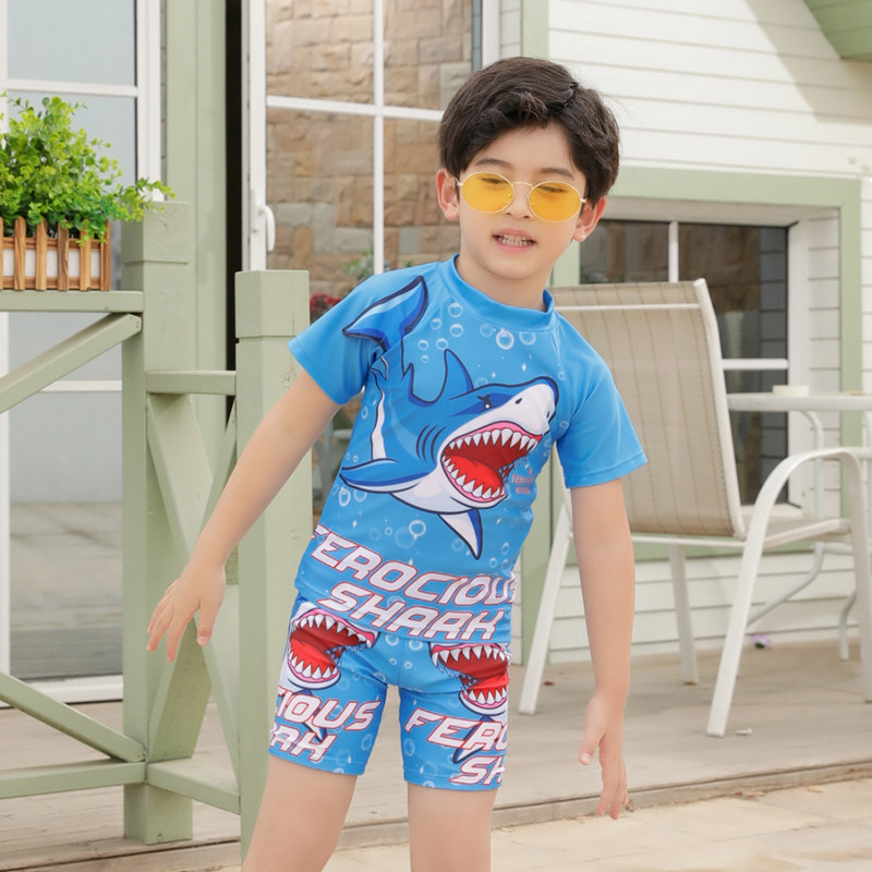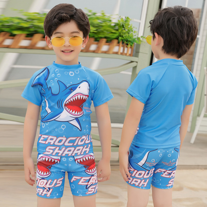 New children's swimsuit boy middle child student infant cartoon shark two-piece short-sleeved quick-drying swimming suit