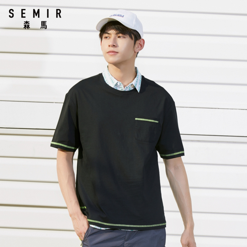 Senma 2022 Summer new short sleeves T-shirt Male Collider Letters Printed Blouse Pure Cotton Breathable Loose slim T-shirt