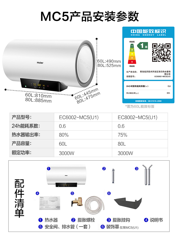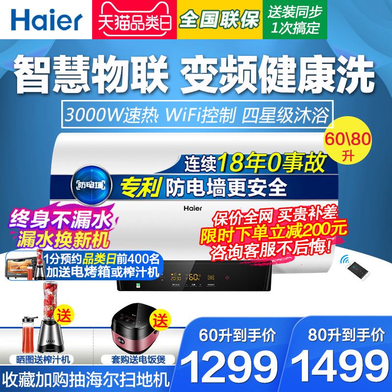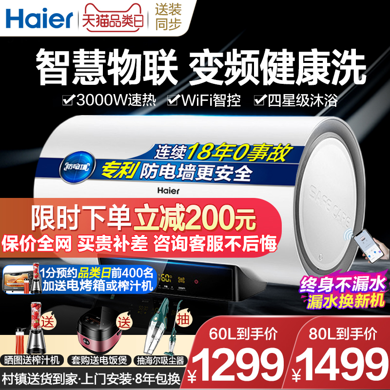 Haier 80L variable frequency electric water heater electric household first-class energy efficiency super large capacity bath official flagship store 60 liters