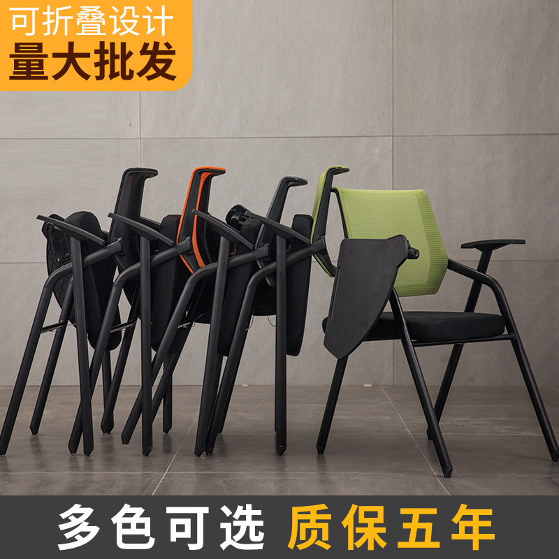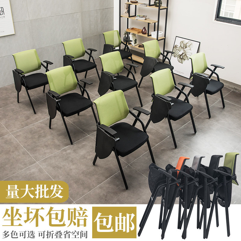 Package installation breathable mesh meeting training chair with writing board folding student tutoring mobile news seat with wheels