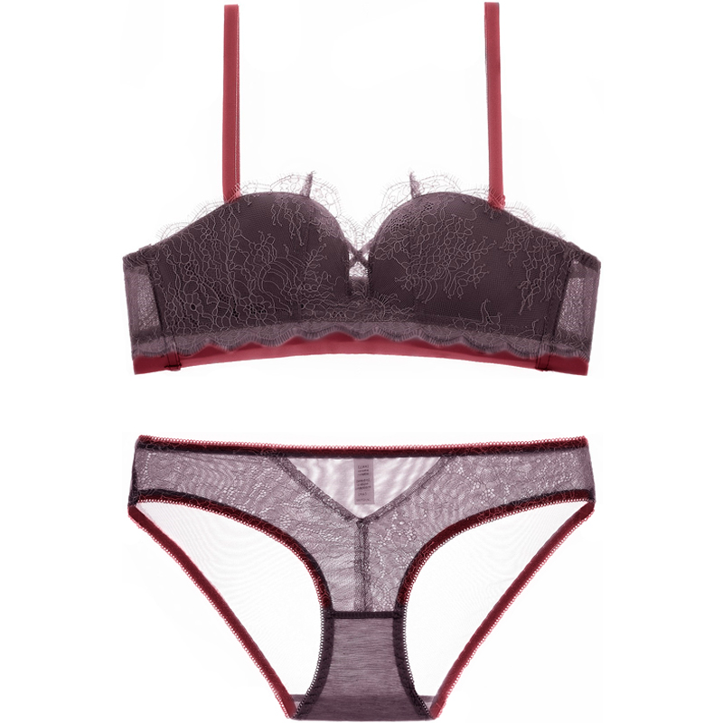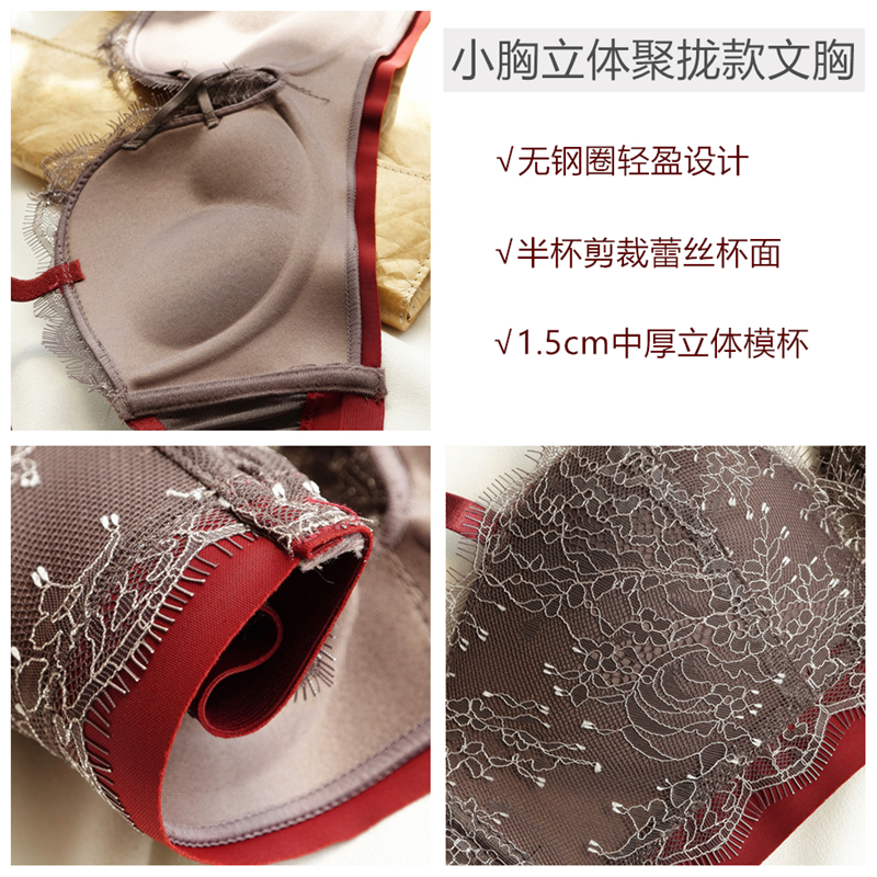 Bra women's small breasts gathered to thicken sexy lace no steel ring half a cup of girl underwear suit up to anti-sagging spring