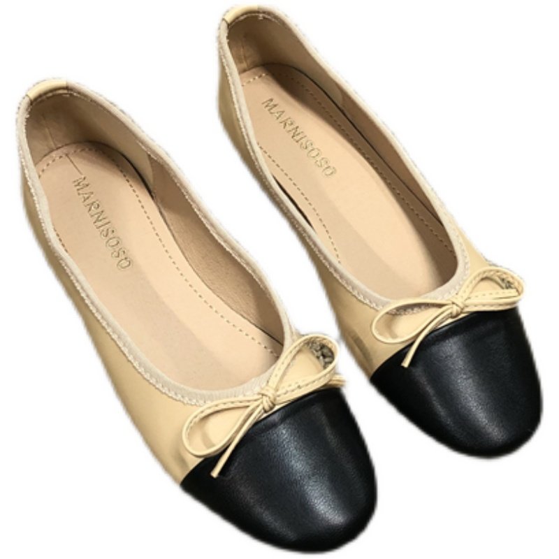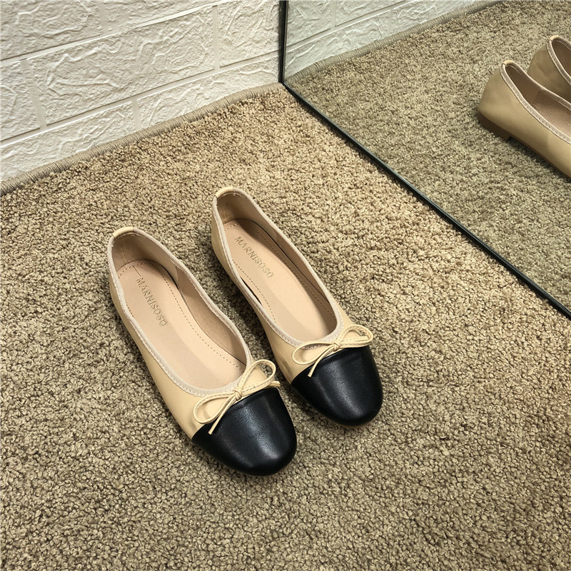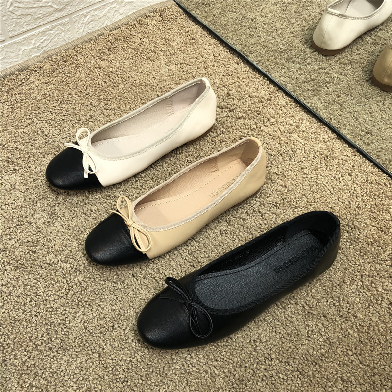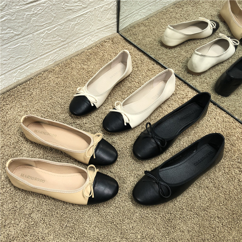 Xiaoxiang round head color matching single shoes women's 2022 new soft bottom nurse shoes comfortable bow beanie shoes flat scoop shoes