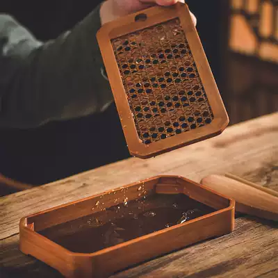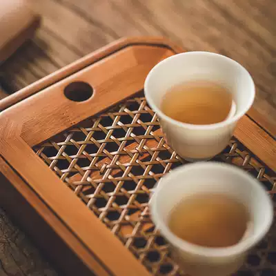 Shengcai Taiwanese master Liao Yinan hand-made large paint tea tray dry bubble plate bamboo weaving pot bearing dry bubble table bamboo small tea plate
