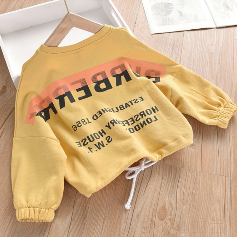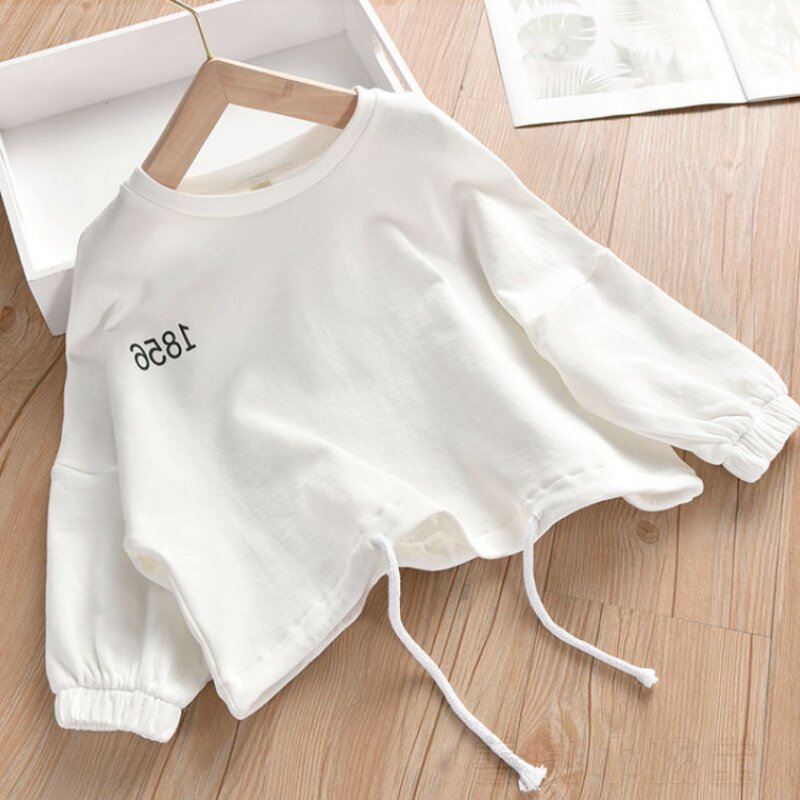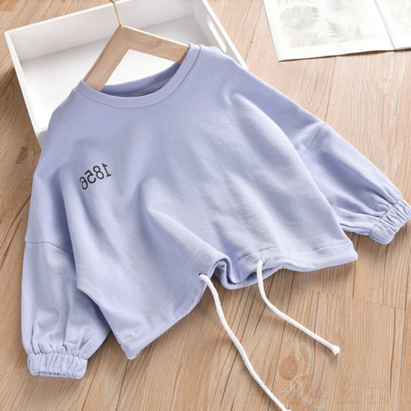 Girls' thick T-shirts for children and middle-aged children solid color fashion capless long-sleeved 2020 spring new Korean version of the bottoming T-shirt top trend
