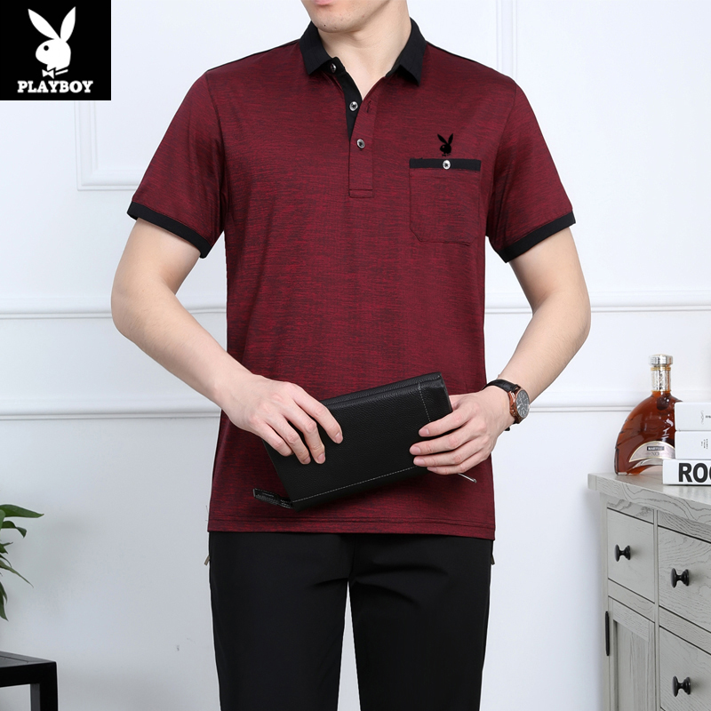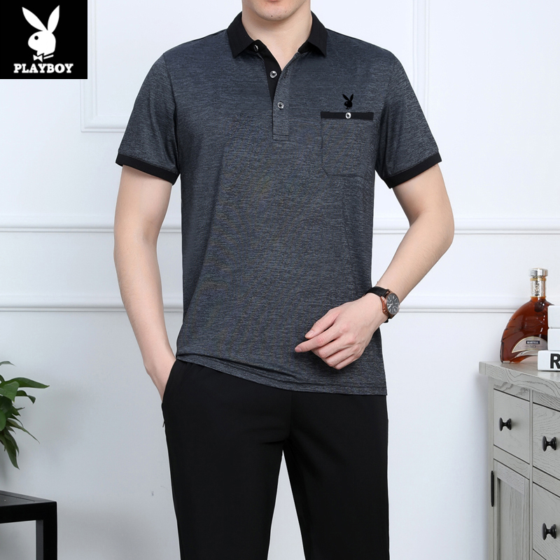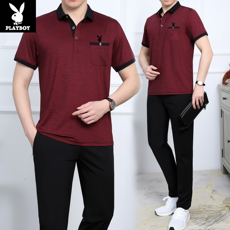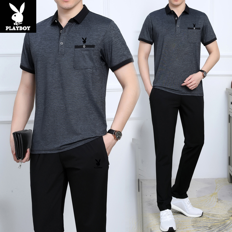 Playboy summer new middle-aged and elderly sports suit male middle-aged father breathable ice silk father short-sleeved summer dress