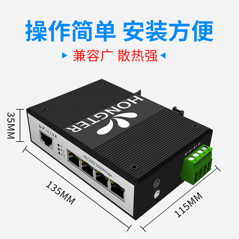 HONGTER industrial-grade switch 1100 trillion 4 openings 5 openings 8 10 16 ports DNI rail type non-management type hub B Ethernet switch aluminium alloy material housing