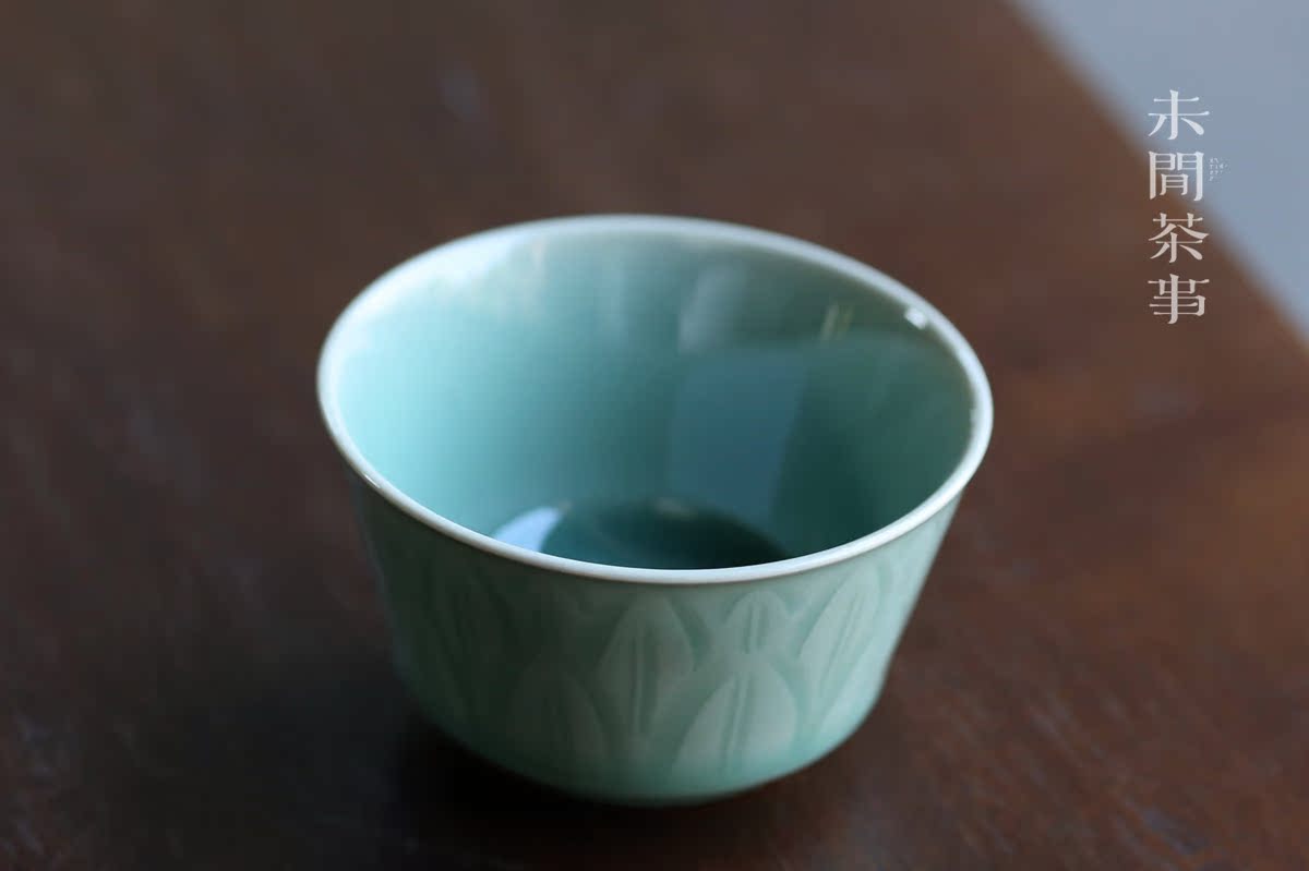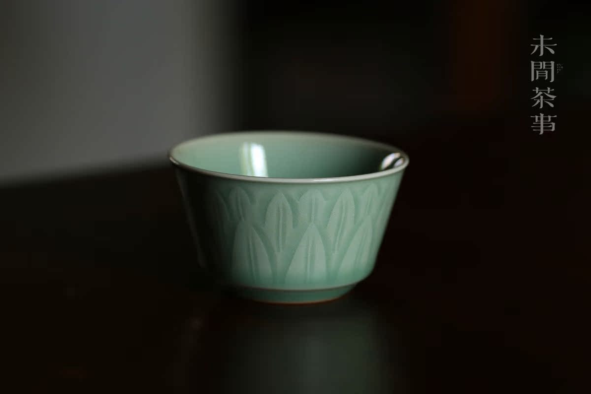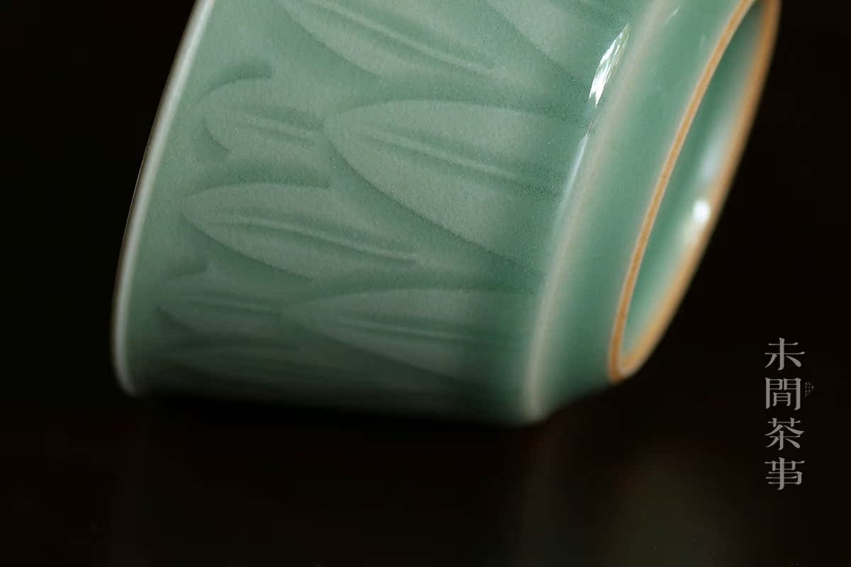 Plum green lotus petal cup Master cup Longquan New generation craftsman Hu Jianyong hand-made