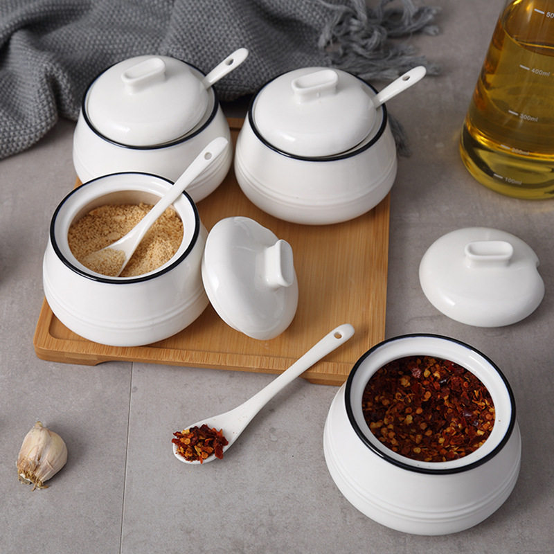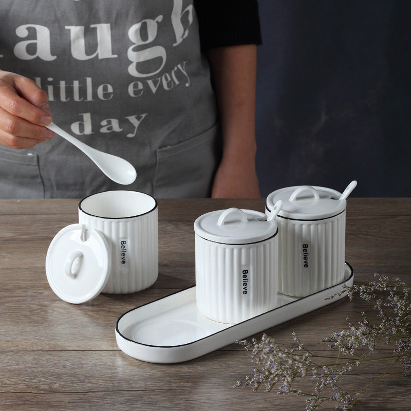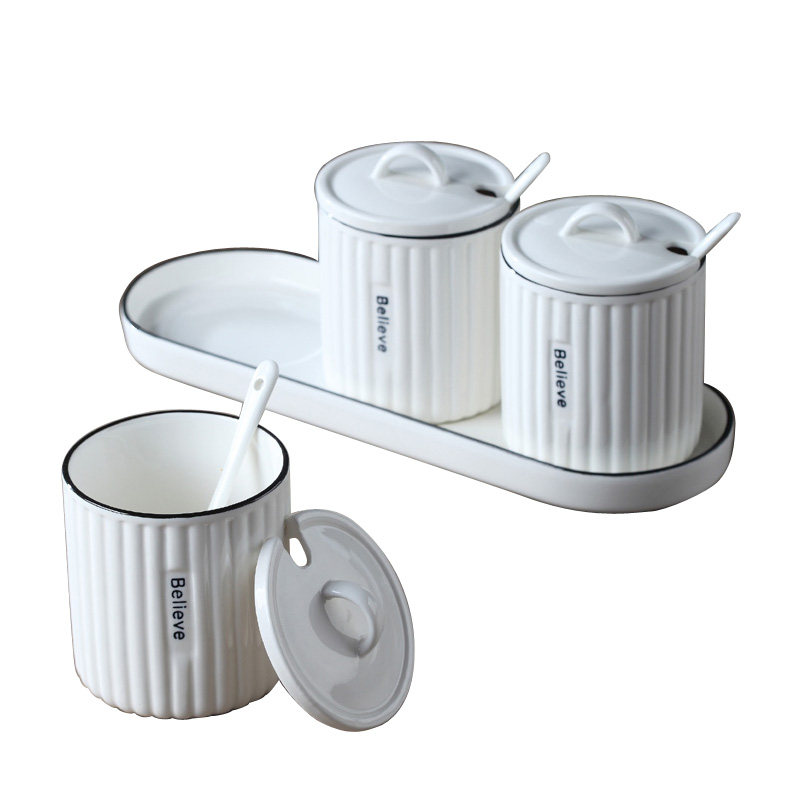 Striped 3 seasoning jars with ceramic base three-line seasoning jar two assembled bamboo plate base three-line seasoning jar 3 assembled bamboo plate base
