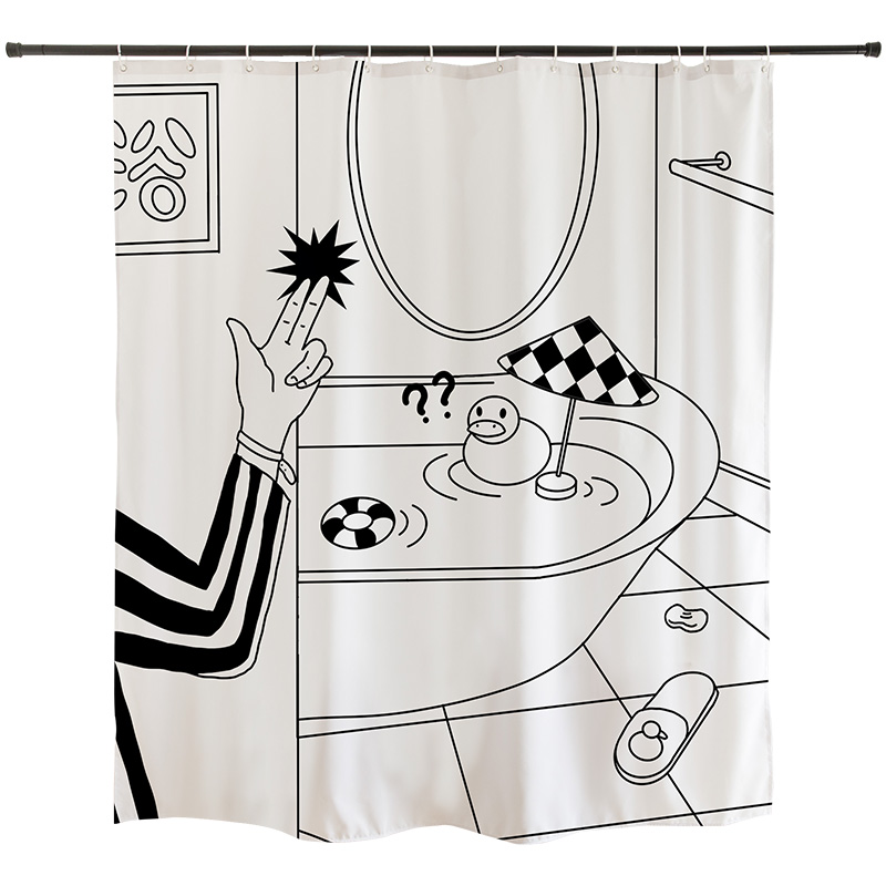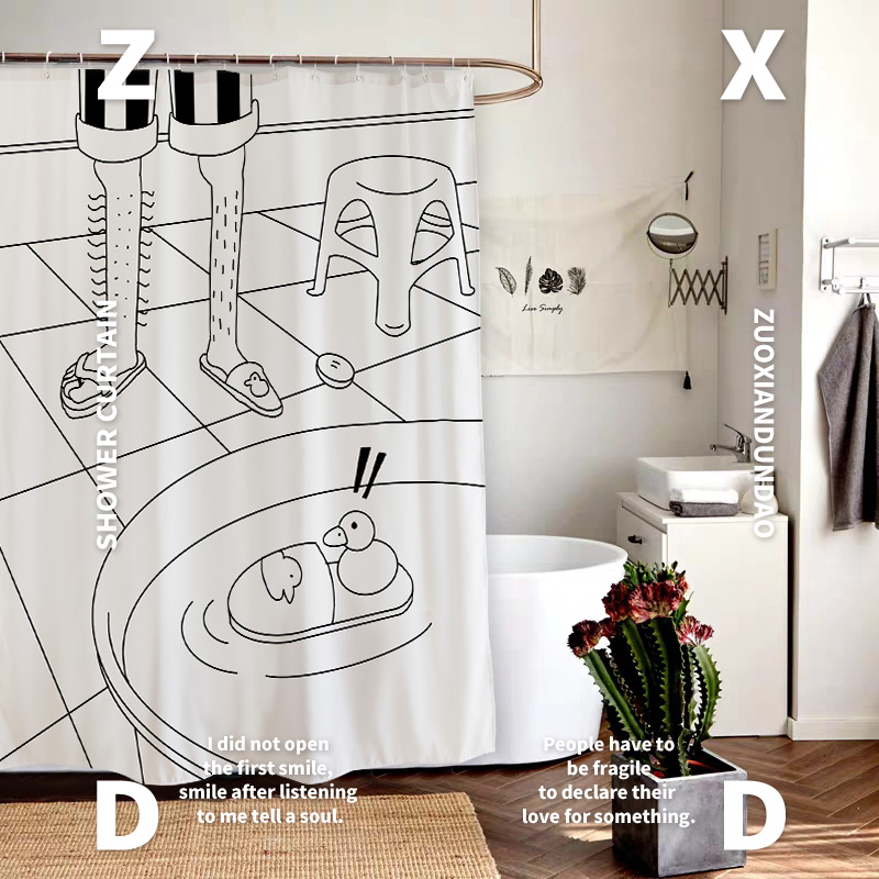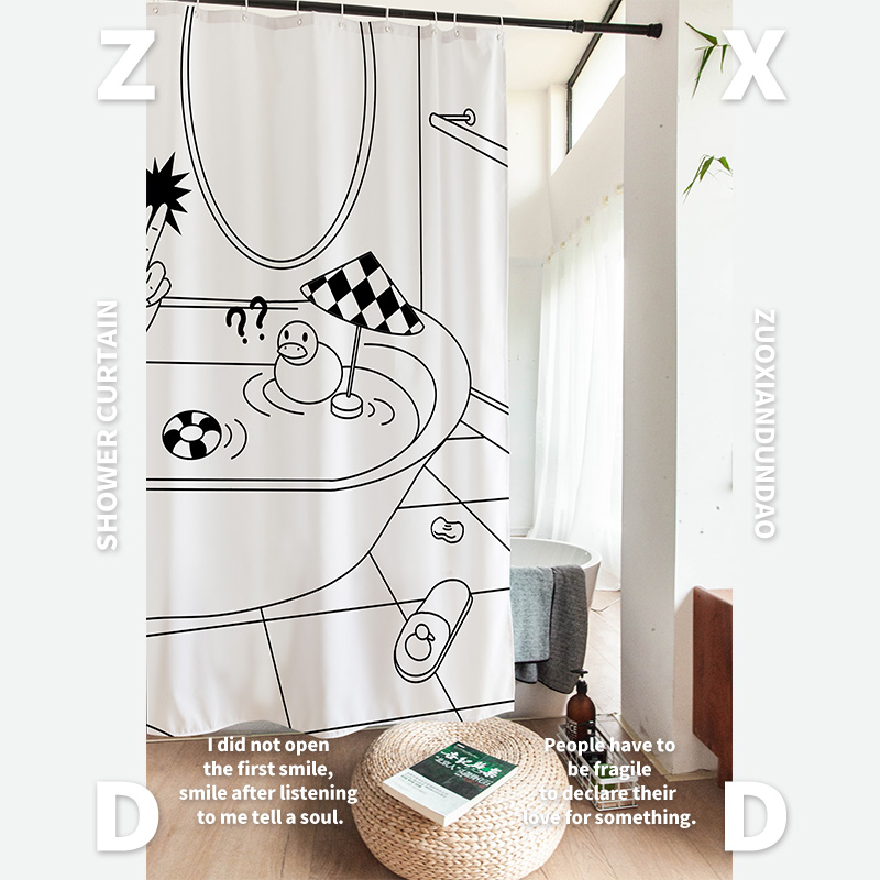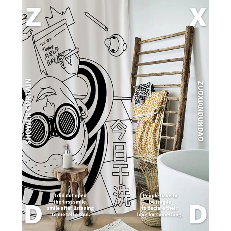 Left Salty Jordan Road Original Designer Abstract Bath Curtain Waterproof curtain Makeup Room Bathroom Bath BATH PARTITION WINDOW WATER STOP