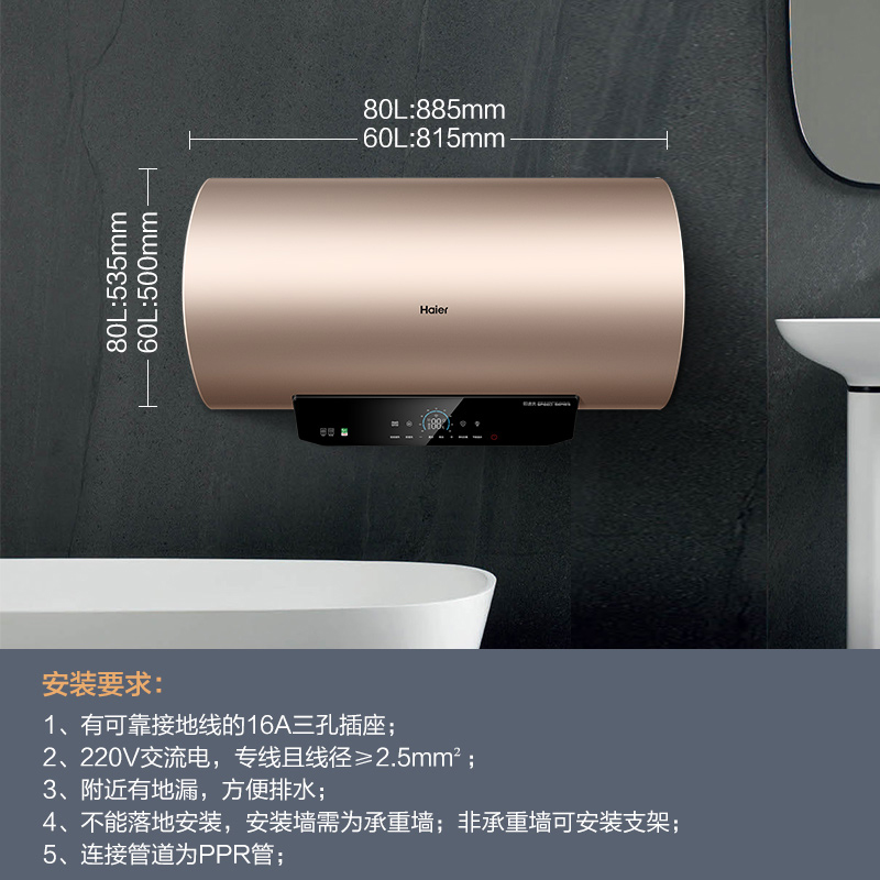 Haier MKA electric water electric water electric home 60 liters 80L large capacity first-class energy efficiency energy-saving make-up room seamless liner