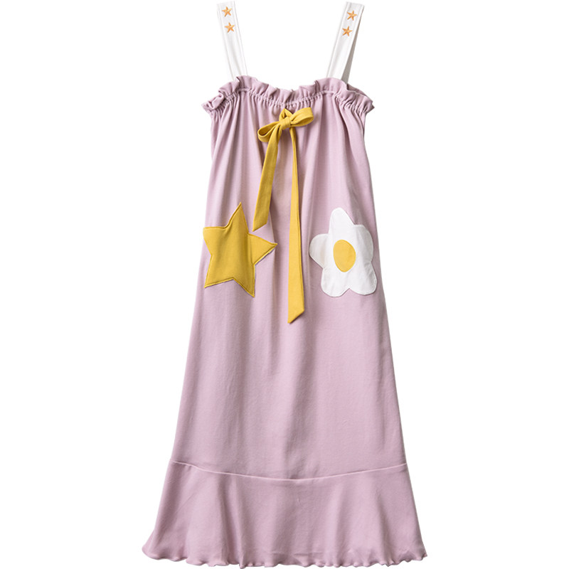 Nightdress summer girls cotton large size suspenders sexy cute summer mid-length pregnant women cotton home service pajamas