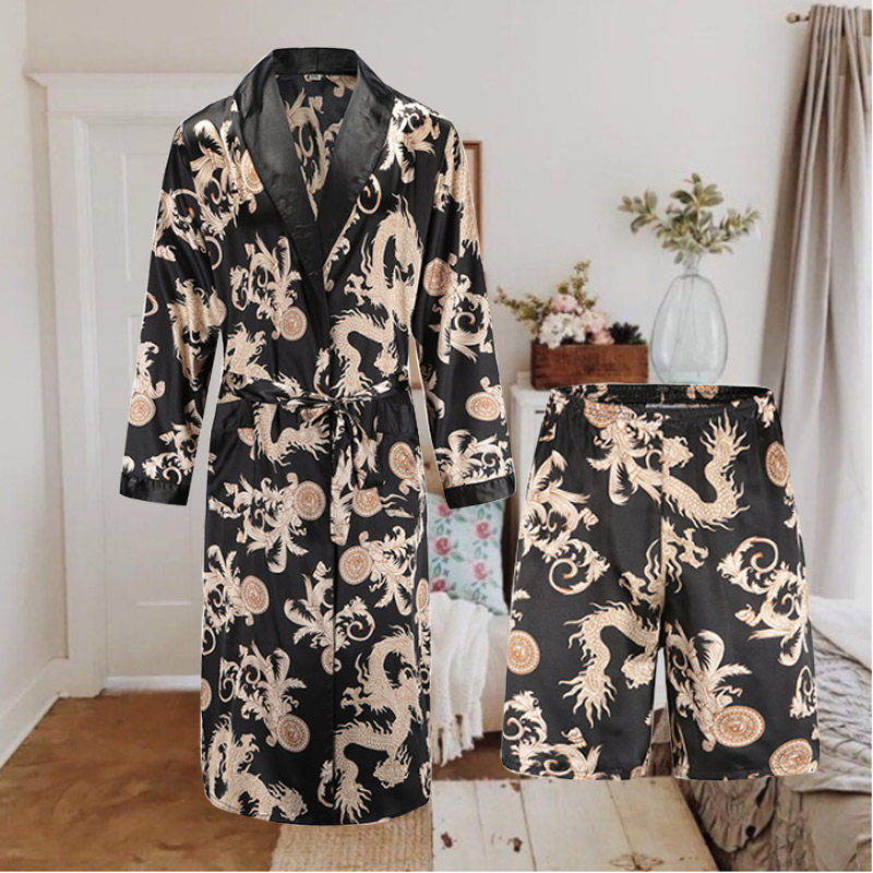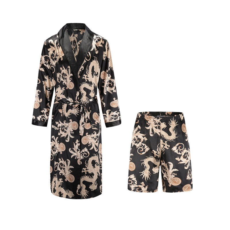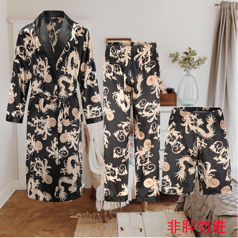 Fat Sub High-end Ice silk sleeping robe with long version of large size Longgrain emulated silk Garfertilizer to increase the fattener's bathrobe 300 catty