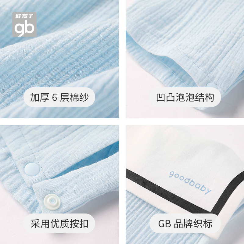 Goodbaby good kids Summer baby Lieven sweaters male and female couged-up sweatless khaki thickened 6-layer cotton yarn
