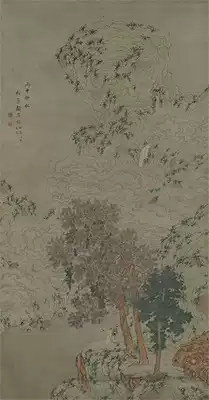 Qing Gu Fuzhen "View waterfall map" Ultra-high-definition electronic picture decorative inkjet identification copy Chinese painting material