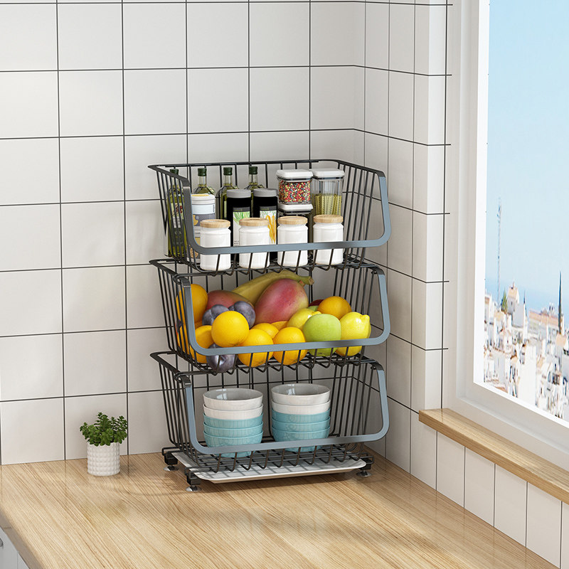 Kitchen household multi-functional storage basket can put onion, ginger and garlic multi-layer floor kitchen fruit and vegetable rack storage basket