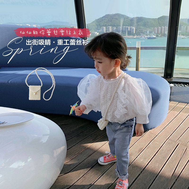 Hong Kong Girl Girl Shirt Spring Dress 2020 New Small Baby Shirt Han Edition Children Lace Jersey Snow-spinning Blouse