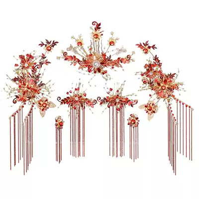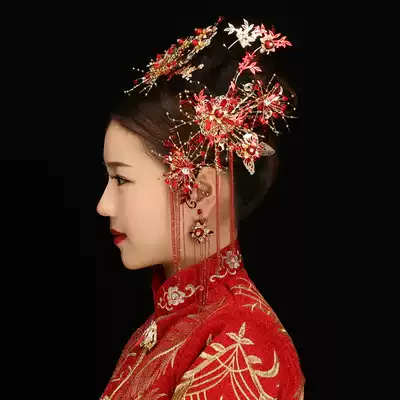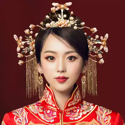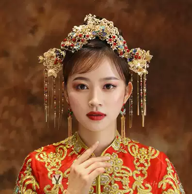 Xiuhe clothing headdress bride Xiuhe Chinese atmosphere wedding retro phoenix crown Dragon Phoenix hanging ancient clothing hair accessories ancient style jewelry