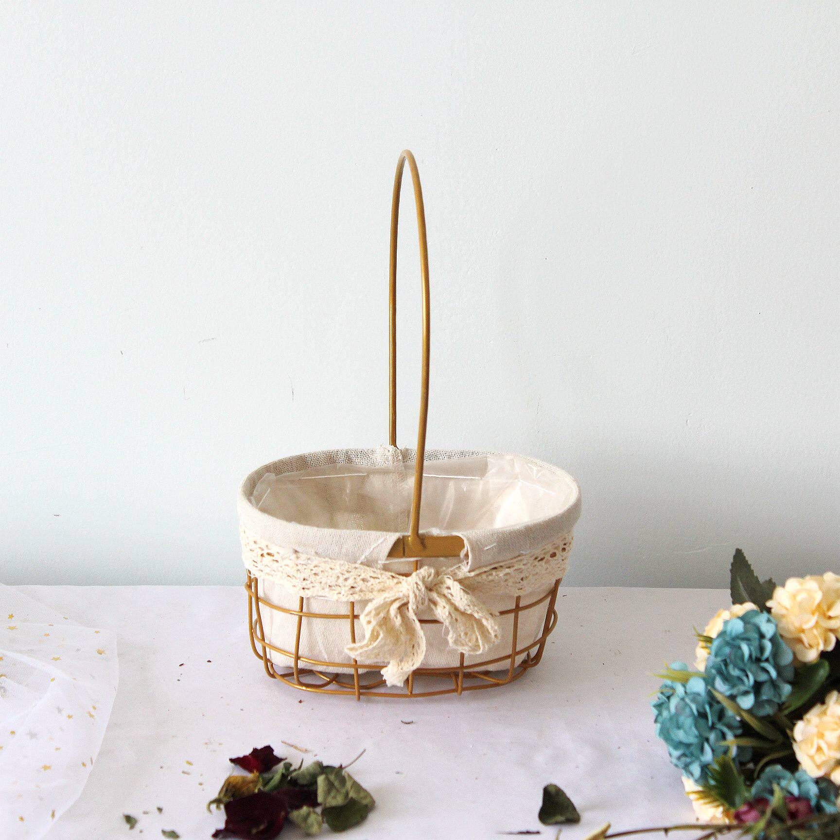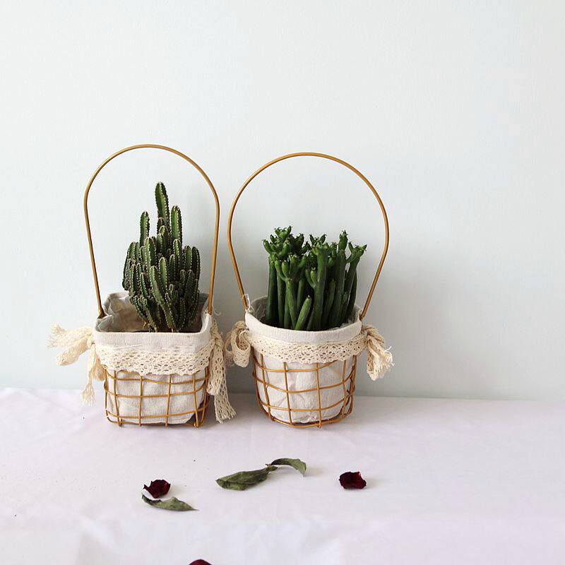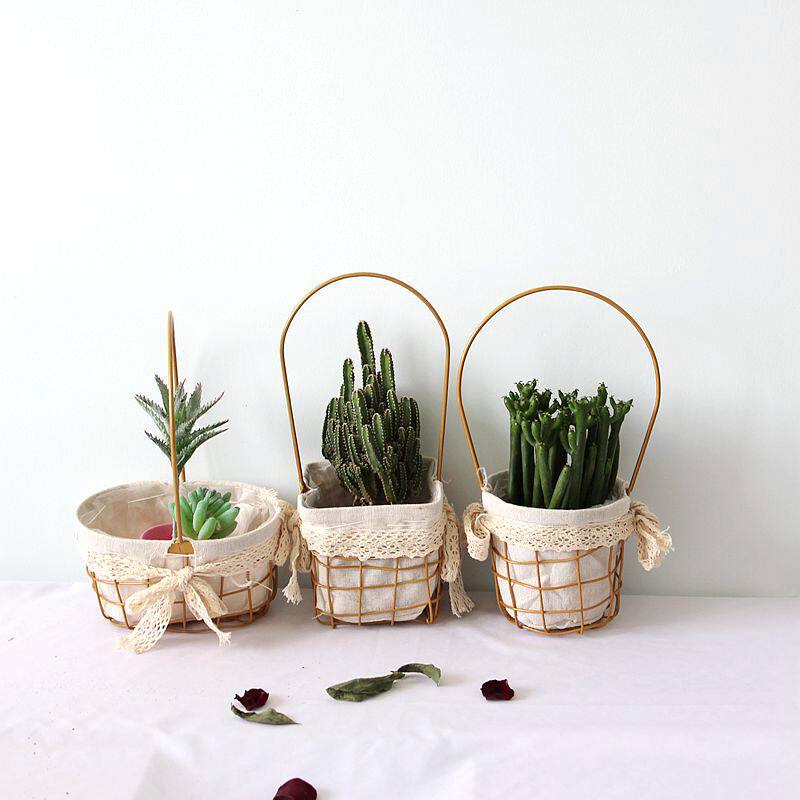 Iron hand-held flower basket happy cake flowers green planter succulent flower pot living room decoration wedding candy basket metal small basket