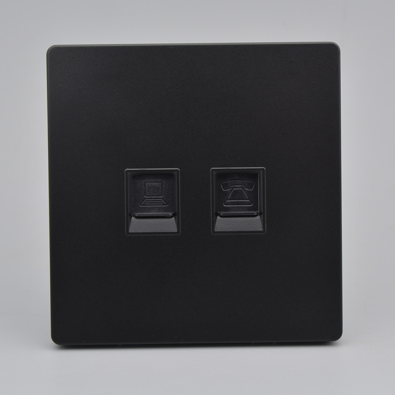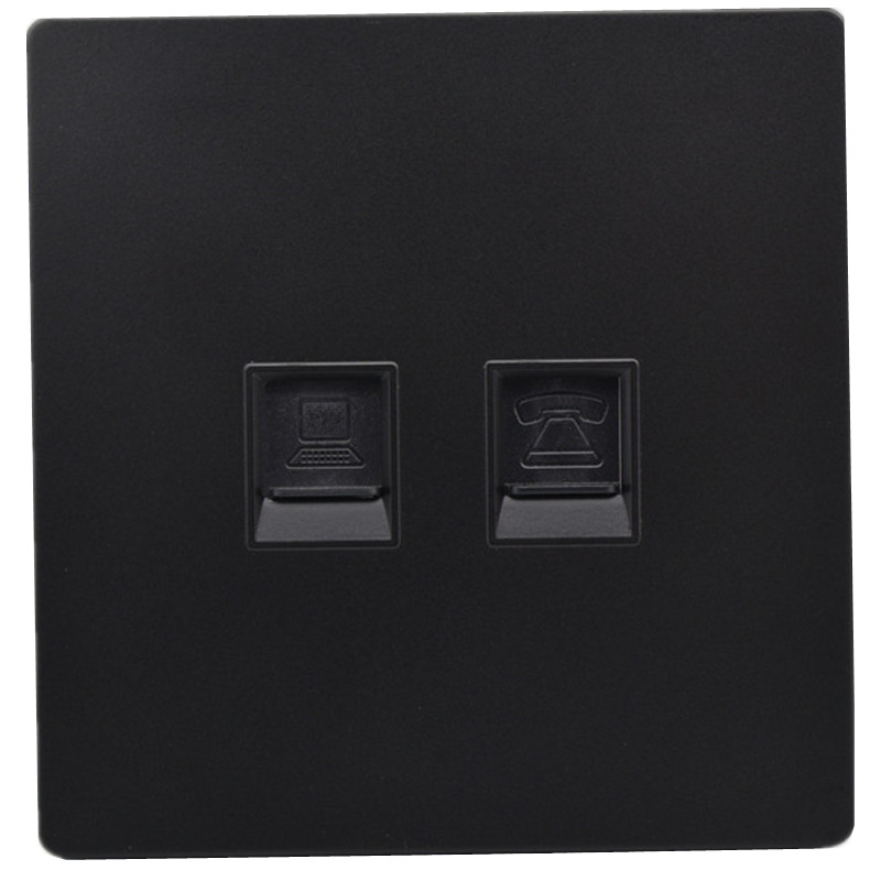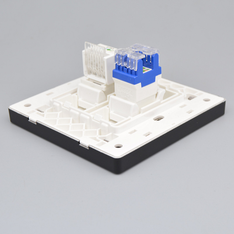 Black dual-port CAT6 IP phone panel 1 network 1 electric two-digit Gigabit six-class computer network cable port voice socket