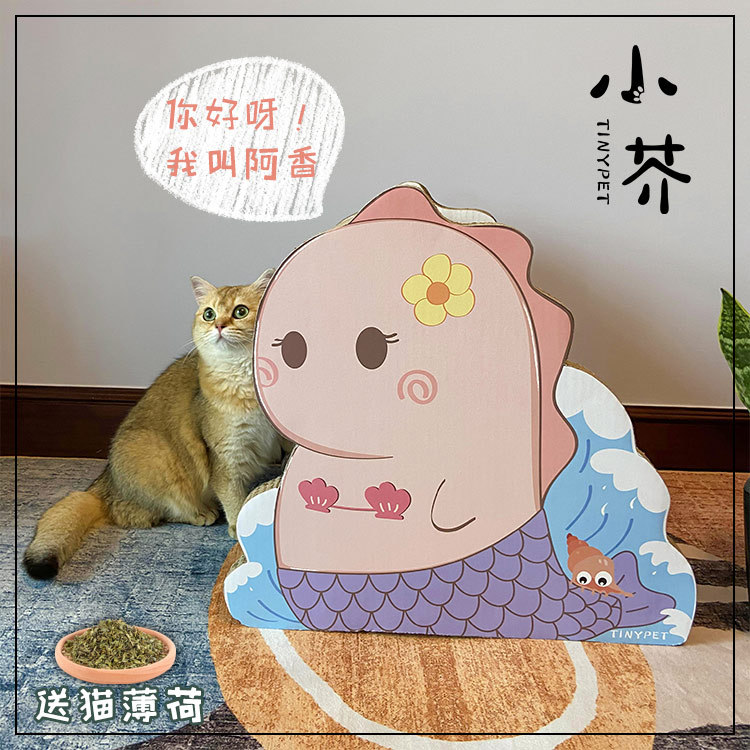 AdeHome Tennis Red Little Dinosaur Beauty Fish Cat Grabbing Board Corrugated Cardboard Kitty Toy Cat Supplies Cat Grinding Claw