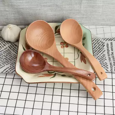 Big soup spoon Japanese wooden spoon solid wood spoon large wooden spoon large wooden hot pot spoon porridge spoon long handle wood spoon lettering