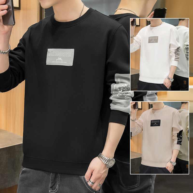Flower Playboy long sleeve T-shirt male autumn fitted clothes trendy loose spring casual blouse round collar inner lap T-shirt