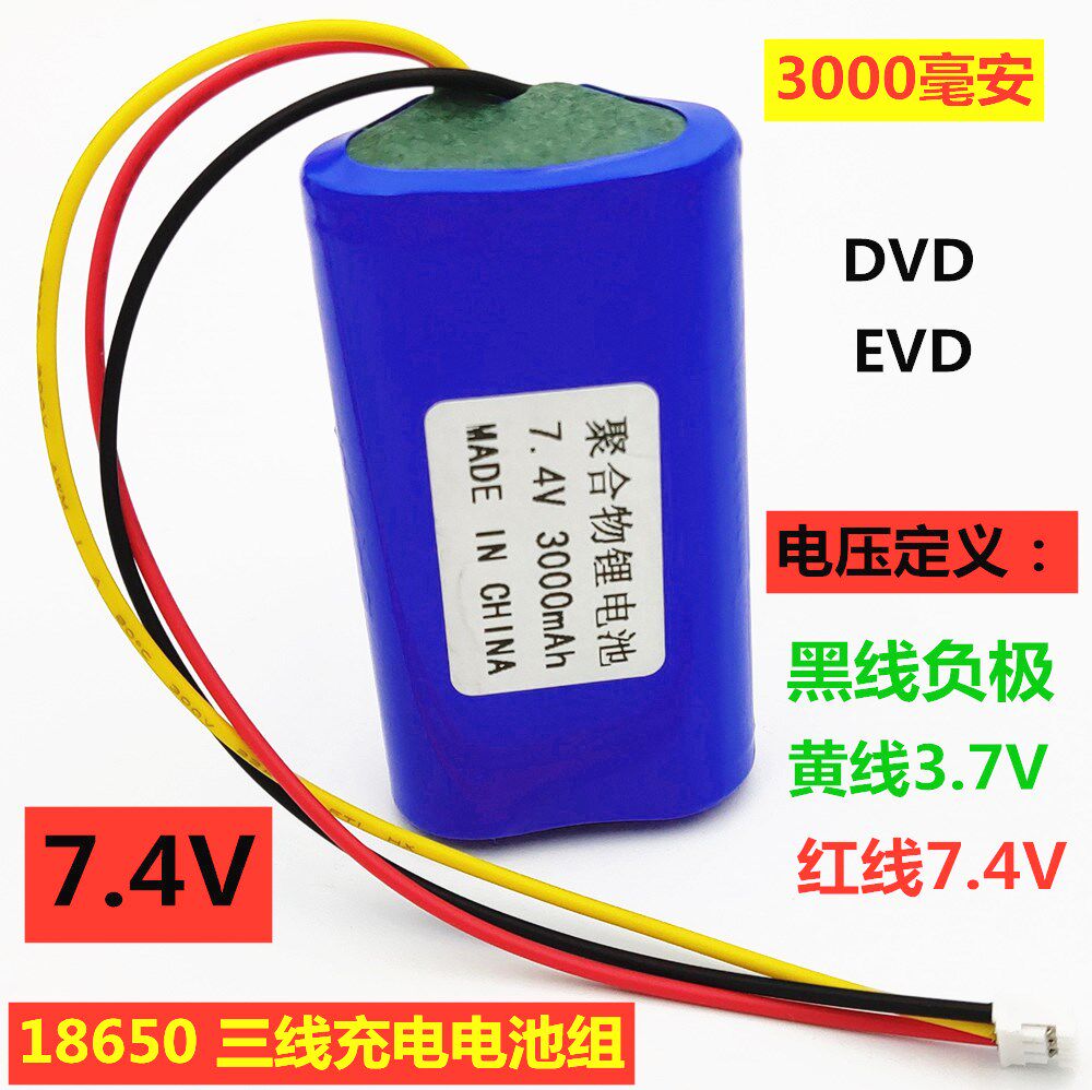 7 4V third-line 18650 Lithium battery group 9V Senko DVD gold positive EVD mobile watching singing video machine 3-wire electric core
