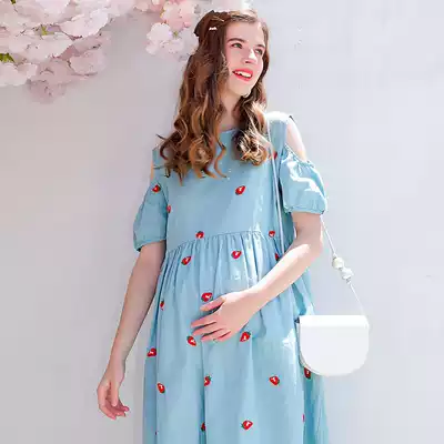Pregnant women's dress summer thin round neck off-the-shoulder age-reducing maternity dress fashion Korean version of net red skirt western style autumn dress