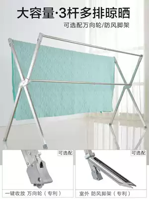 Simple clothes rack folding household drying hanging floor indoor and outdoor windproof balcony drying clothes rack quilt telescopic artifact