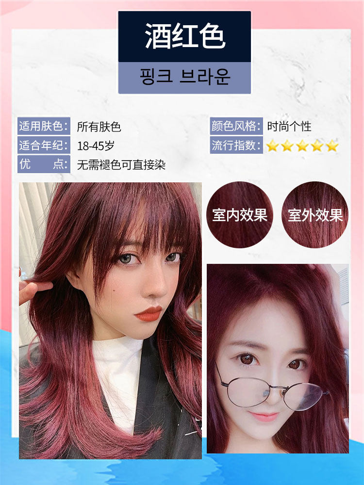 Wine red hair dye cream female 2020 new popular pure black brown plant artifact after dyeing color lock hair film set
